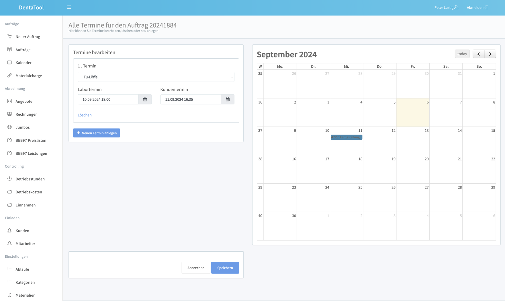Digitale Auftragserfassung beginnt bereits beim Zahnarzt. Eine Kalenderübersicht zeigt immer an, welche Mitarbeiter:in woran arbeitet und was heute fertig sein muss. Die Kommunikation mit der Zahnarztpraxis über DentaTool vereinfacht Prozesse.
